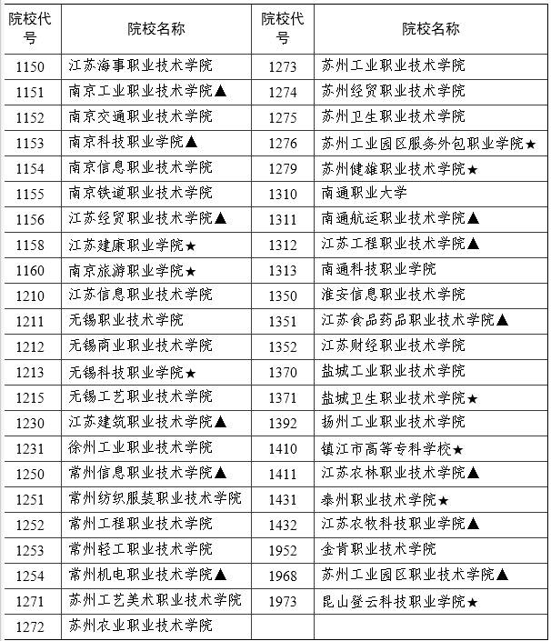 注:院校名稱后加“★”的為2016年新增試點院校,加“▲”的為2016年招收退役士兵試點院校。
