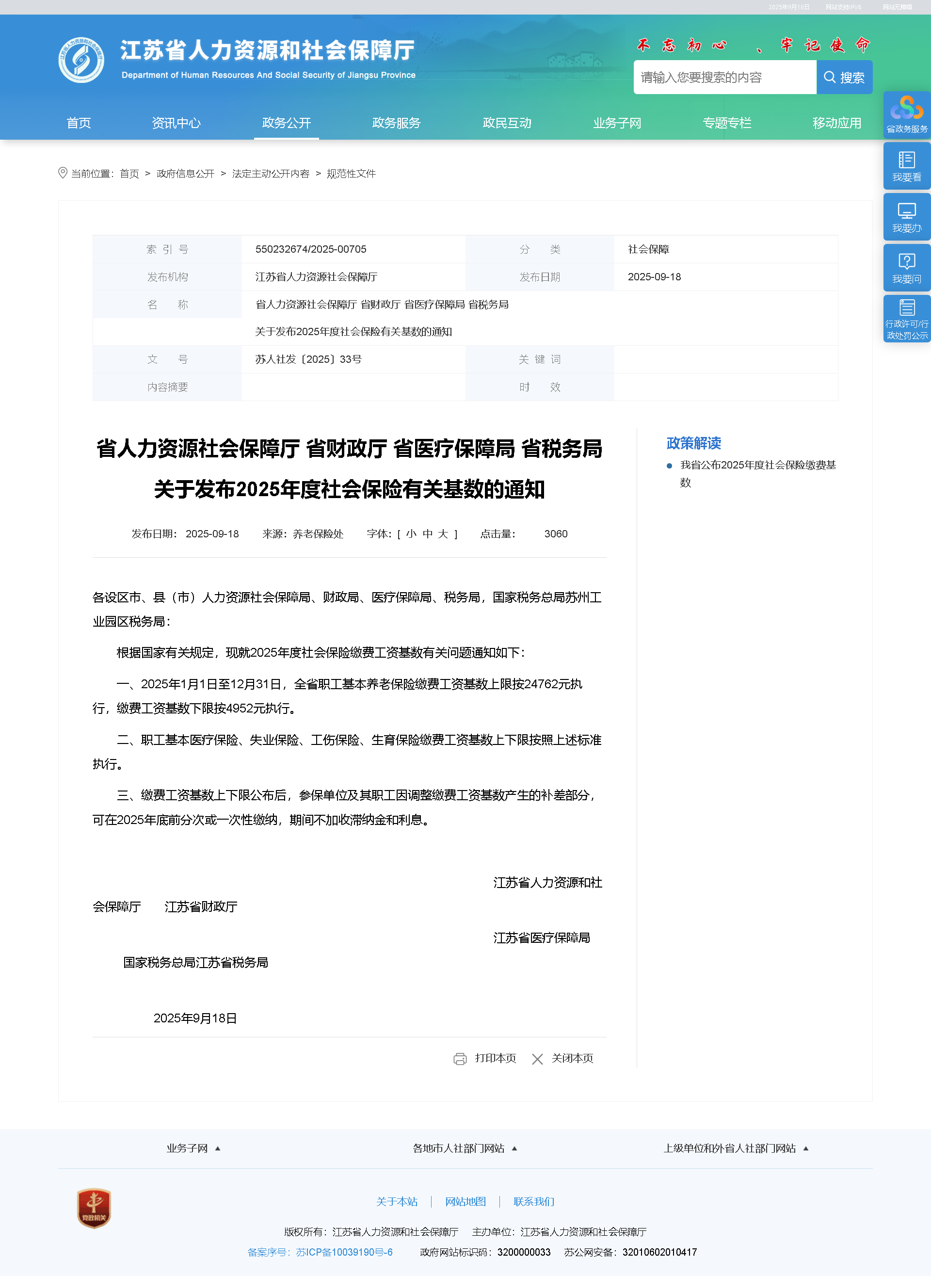 省人力資源社會保障廳 省財政廳 省醫(yī)療保障局 省稅務(wù)局關(guān)于發(fā)布2025年度社會保險有關(guān)基數(shù)的通知