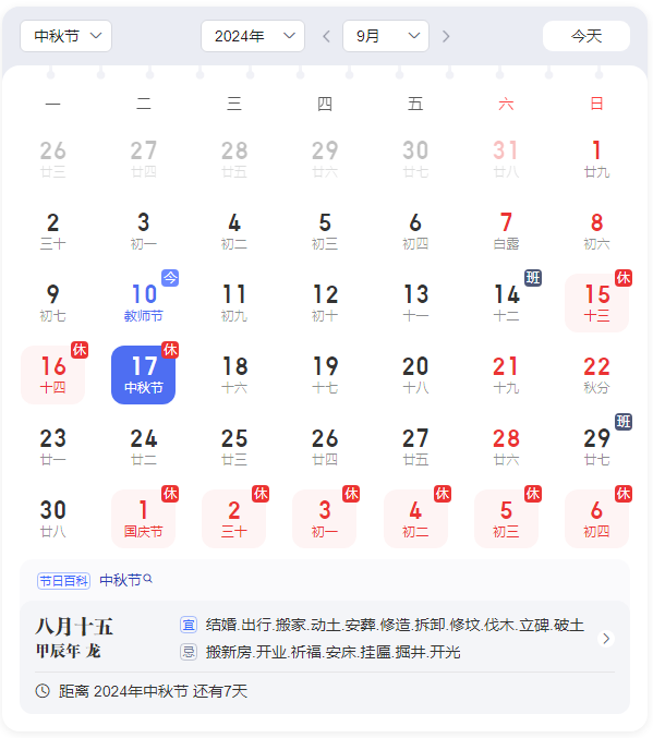 2024年中秋國慶放假通知