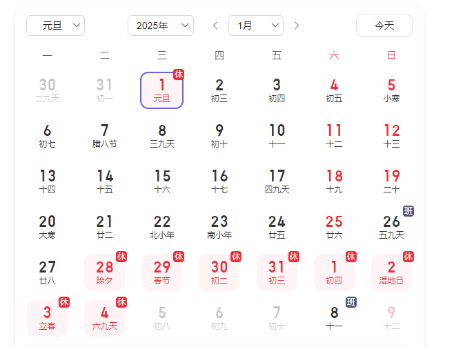 2025年元旦放假通知